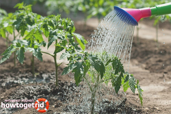 - Arrosé d'eau tiède. Une cheville est enfoncée ensuite, et les plantes sont attachées avec une corde. En cas de risque de gel, nous couvrons le lit de tomates avec un revêtement non tissé. Si possible, le sol est paillé d'humus ou de tourbe.
