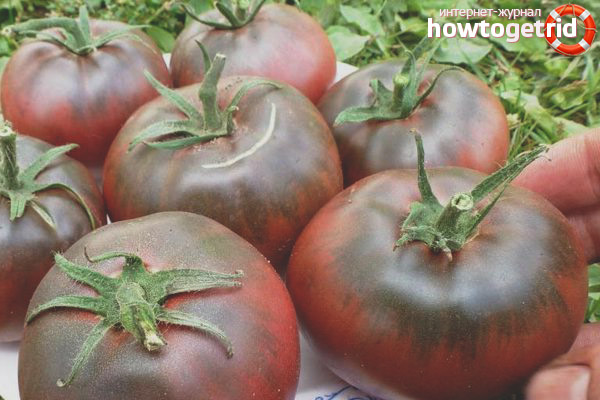 Les tomates de la couleur foncée originale décoreront n'importe quel plat et sont également idéales pour la consommation fraîche. Les graines ne peuvent pas être achetées dans des magasins spécialisés, et chaque année, vous pouvez les récolter indépendamment à partir de fruits mûrs. Les jardiniers parlent de la variété comme d'un soin à haut rendement et sans prétention.