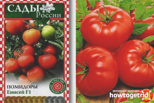 Yenisei Tomato est une plante haute avec de gros fruits. Il s'agit d'une variété semi-déterminante, c'est-à-dire que la plante cesse de croître lorsque 10 à 12 brosses à fleurs sont formées, leur placement est observé toutes les deux ou trois feuilles manquées.
