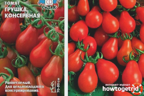 Tout résident d'été qui a cultivé au moins une fois une variété de cette variété peut le recommander - les fruits ont non seulement une belle apparence, ils sont savoureux, ils sont faciles à entretenir. Extérieurement, les tomates déjà mûres ont une couleur pourpre, mais si le fruit n'est pas encore mûr, il sera alors de couleur vert clair. Il est facile de deviner la forme en fonction du nom de la variété - ils sont en forme de poire, mais la taille du fruit est petite: leur poids maximum ne peut pas dépasser 70 grammes. Une autre propriété distinctive des tomates est qu'elles ont de petites côtes. Les tomates sont sucrées, ne craquent pas. Le nombre de chambres avec des graines - pas plus de 4 pièces.