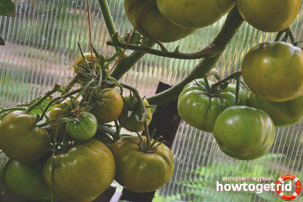 - La plante elle-même est indéterminée. Le buisson est un peu feuillu avec de petites plaques et une teinte vert clair. Le premier pinceau se forme sur la 8e ou 9e feuille, l'aspect moyen des tomates sur le pinceau est observé jusqu'à 5 fruits. Une surcharge est souvent notée.