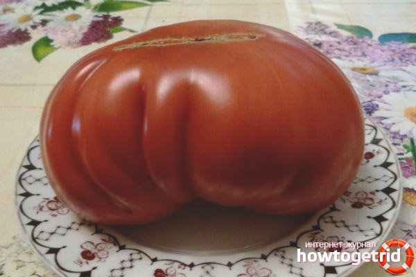 - Les fruits sont très gros, charnus. Le poids moyen d'une tomate est de 350 grammes. Avec des soins appropriés et de haute qualité, le poids peut atteindre 500 grammes.