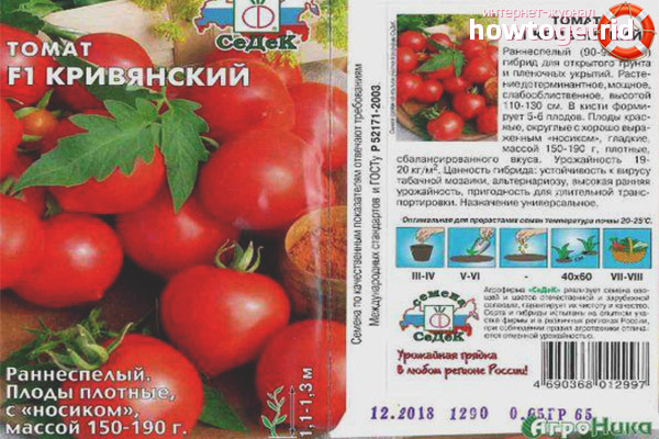 Tomato Krivyansky se compare favorablement à d'autres hybrides grâce à sa capacité à tolérer des conditions de croissance défavorables. Presque pas affecté par des maladies de divers types. Bon rendement - environ 19-20 kg de tomates peuvent être récoltées par mètre carré.