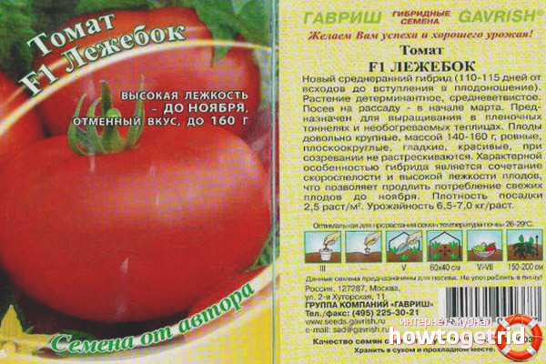 La variété de tomate Lezhebok est un hybride qui a été élevé par des éleveurs russes. Il donne une grande quantité de récolte - de chaque buisson, vous pouvez collecter jusqu'à 6-6,5 kg de tomates. La variété est un développement relativement récent, mais elle a déjà acquis une grande popularité auprès des jardiniers. La plante est plantée dans une serre, tout abri de film, en lits ouverts.