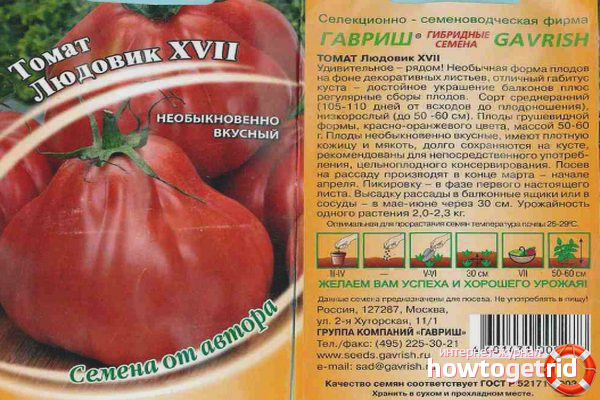 "Louis 17" fait référence aux cultures de mi-saison, pousse bien et porte ses fruits en plein air et en serre, en serre. Appartient à des tomates d'un type déterminant, nécessite un pincement rapide (élimination des tiges en excès).
