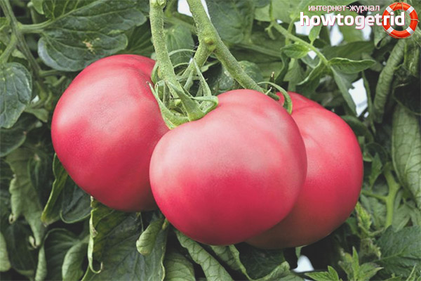 Vous pouvez cultiver à la fois dans une serre spéciale et couvrir la brousse d'un film. Les fruits sont ronds, gros, recouverts d'une peau lisse et résistante de couleur framboise, et les baies «vertes» ont une peau vert clair. Il n'y a pas de tache verte près de la tige. La pulpe est moyennement dense, contient environ 5% de matière sèche. Nids de tomate 6. La masse habituelle d'une tomate est de 400 g et peut produire jusqu'à 13 kg / m2 en serre. Avec tout cela, ils ont un goût incroyable!