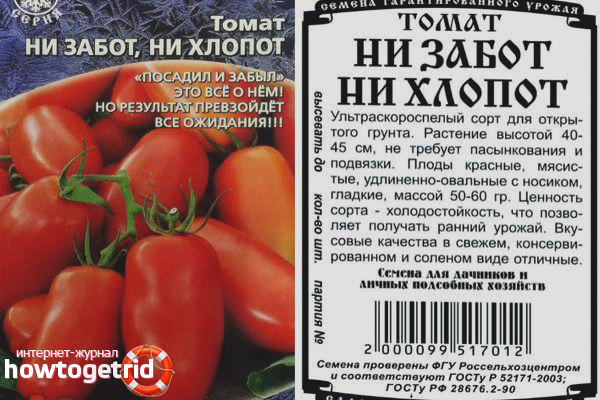 Variété de tomates avec un nom intéressant "Ni soucis, ni tracas" cultivées dans l'Oural. Les sélectionneurs ont essayé de créer un look qui répond à tous les souhaits des producteurs, dont les principaux sont: un haut niveau de rendement, une facilité d'entretien, une résistance aux maladies et aux ravageurs. À chaque fois, le nouvel hybride obtenu présente certains avantages sur ses «ancêtres».