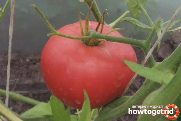 Les tomates mûres sont de grande taille - la masse d'un fruit est d'environ 250 grammes. La couleur est rose. La surface est lisse, une petite nervure est visible près de la tige.
