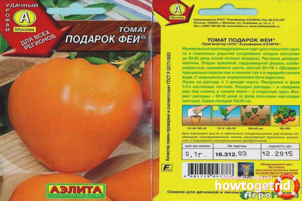 Important! La variété de tomate Fairy Gift n'est pas une variété hybride, ce qui permet aux producteurs de récolter indépendamment les graines pour le prochain semis.