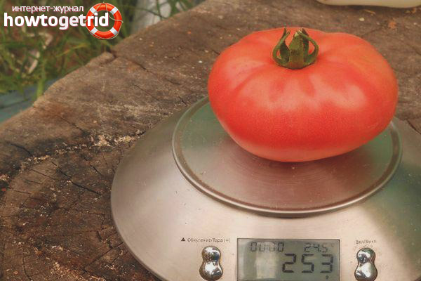 La forme du fruit est plate et ronde. Les tomates de taille moyenne pèsent 150-200 grammes chacune. À maturité complète, la peau acquiert une riche teinte rouge. Le goût des fruits est excellent, les légumes sont utilisés pour tous les types de transformation et pour la consommation fraîche. Les tomates font de délicieux jus, de la purée de pommes de terre et des sauces.
