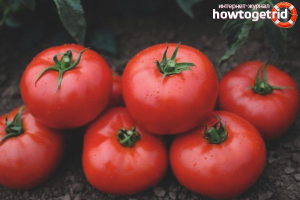 Le poids moyen d'une tomate est de 150-200 gr., La forme est plate et arrondie. Chacun a une peau dense de couleur rouge saturée. Il n'y a pas de tache verte à la base de la tige. La couleur de la tige ne change pas pendant le temps de croissance.
