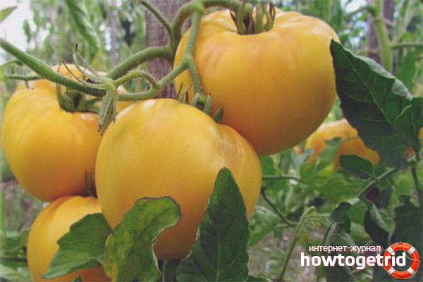 Les tomates poussent bien sur des sols limono-sableux légers. Les tomates géantes jaunes ne sont pas des hybrides, vous pouvez collecter des graines à cultiver sur votre site les années suivantes.