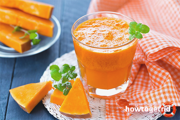- Il peut y avoir beaucoup de variations; mélangez le jus de citrouille avec des pommes fraîches, des carottes, du citron et de l'orange. Proportions recommandées 1: 1. Si vous voulez surmonter une maladie avec un verre, consultez un médecin sans faute avant le cours.