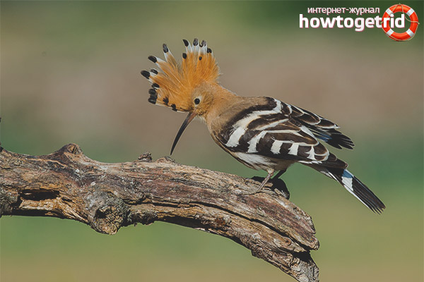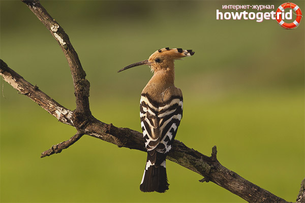 Les huppes ont leur propre famille et, selon la taille, la couleur et les ailes, il existe de tels types: