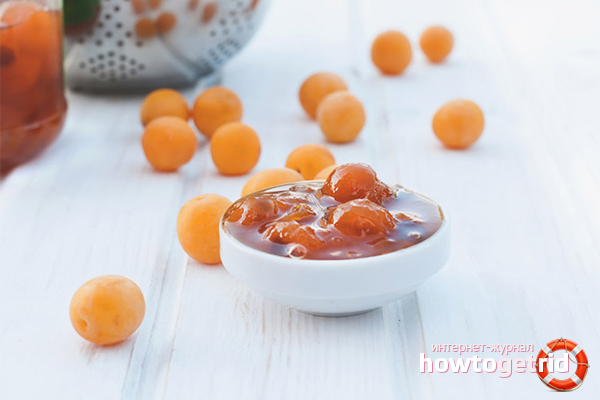 - Lorsque vous préparez de la confiture de prune cerise, n'oubliez pas de retirer constamment la mousse. Verser la composition bouillante dans des bocaux secs, sceller avec du nylon. Réchauffer le récipient avec un chiffon, conserver au froid. Vous pouvez utiliser de la confiture après 2 jours.