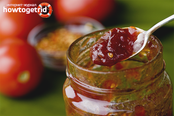 - La confiture de tomates doit être infusée à température ambiante pendant une journée. C'est cette période qui est affectée au refroidissement final. Ensuite, la collation est retirée dans le froid ou le premier échantillon est retiré.