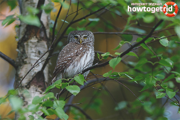 - Ils occupent leur territoire, après quoi ils le gardent soigneusement, ils n'aiment pas les étrangers. Essayez de vous cacher et de regarder des arbres à feuilles caduques pour tout ce qui se passe autour. Les oiseaux chassent la nuit, ainsi que par temps nuageux, lorsque le soleil se lève seulement.
