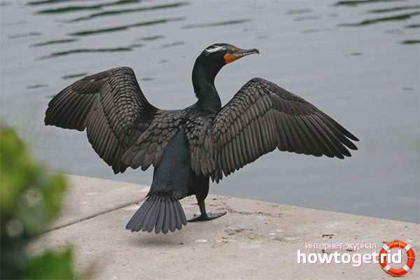 Tous les membres des plumes de la famille ne sont pas complètement imperméables. Après la baignade, le cormoran est obligé de rester longtemps au soleil et de sécher son plumage.