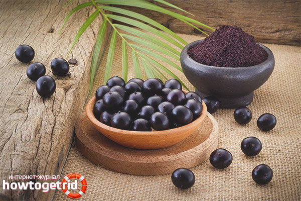 Les baies d'açai gagnent en popularité, et aujourd'hui elles ne sont pas inférieures en termes d'effets efficaces sur le corps des baies de goji. Dans le réseau de pharmacies et de magasins d'aliments naturels, vous pouvez trouver différentes formes de libération, dont les plus populaires et les plus pratiques à utiliser: capsules, teintures, poudres.