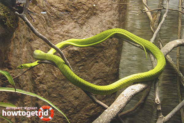 Les Africains appellent souvent ce serpent le diable vert, car le mamba vert est l'un des serpents les plus insidieux de la planète. Il a non seulement un poison neurotoxique incroyablement puissant, qui agit avec une grande efficacité sur une variété de créatures vivantes (y compris les humains), mais aussi des habitudes agressives qui ne sont même pas caractéristiques des serpents dangereux.