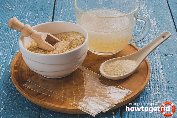 20 g de gélatine peuvent être ajoutés à toutes les sauces, yaourts, kéfir, smoothies aux fruits, premiers plats pour épaissir et acquérir un effet thérapeutique.